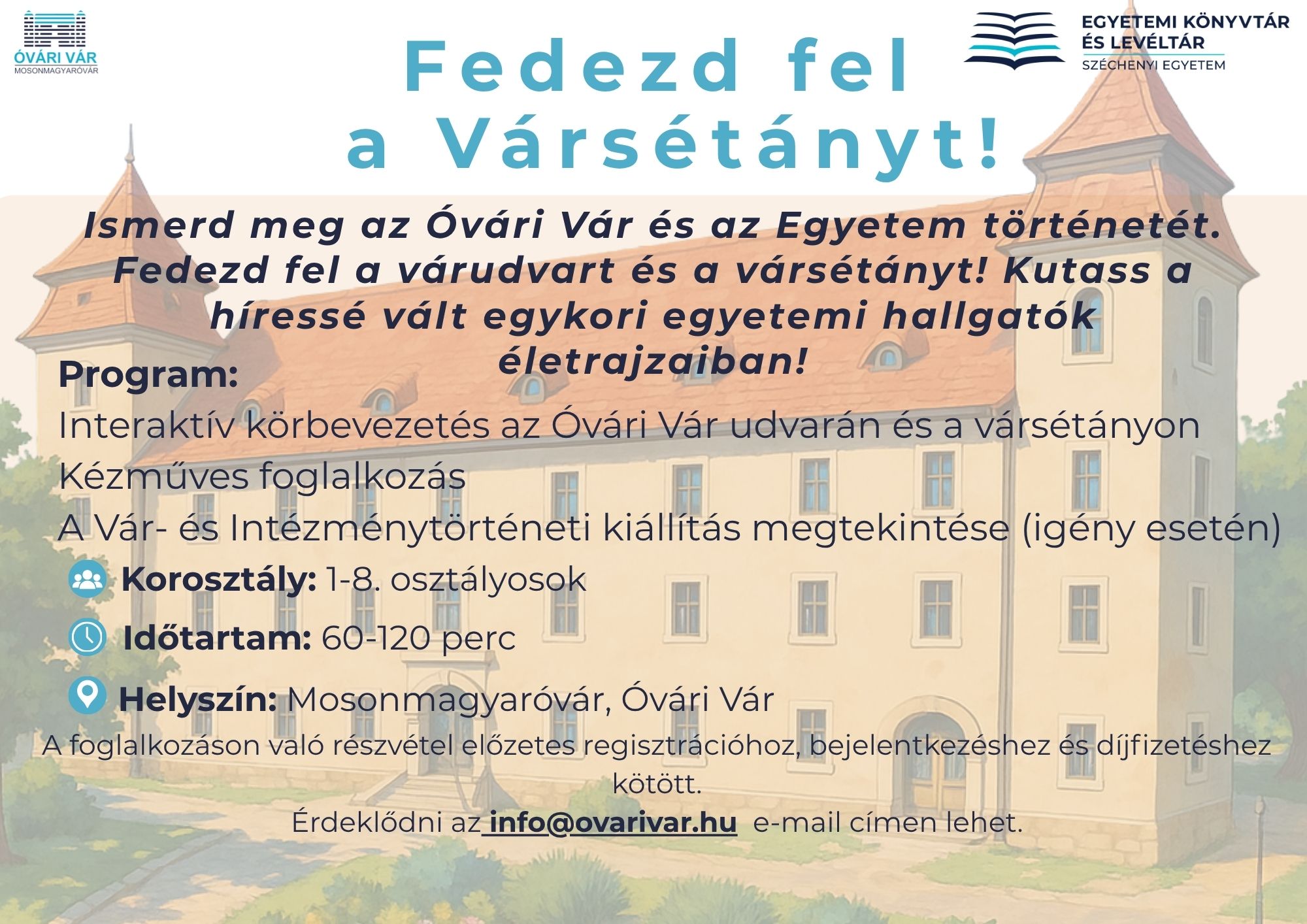 Fedezd fel programjainkat, és tapasztald meg, hogyan válik az Óvári Vár a felfedezés, a játék és a tudás helyszínévé!